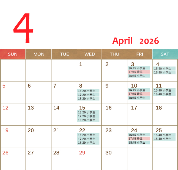 ・4月のレッスン日程をUPしています。