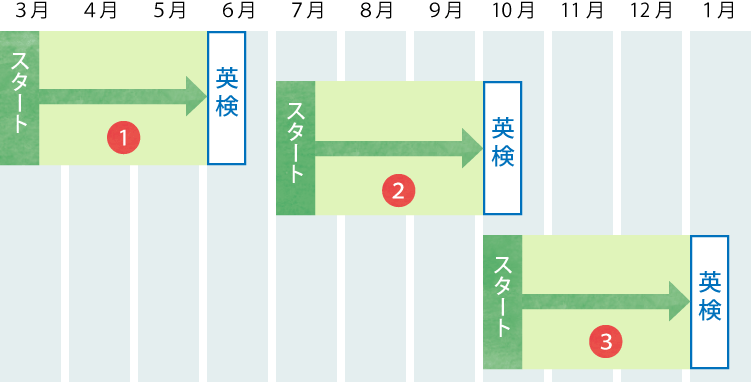 年3回の受験チャンスに併せてスタート時期を選べる3クール制です。